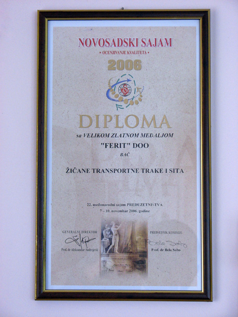 Фирма „Ферит“ - може да вам понуди комплетну услугу, од избора правог решења врсте жичане траке па до реализације исте. Данас, поред понуде жичаних трака, обзиром на дугогодишње акумулирано знање и искуство у овој области нудимо и комплетну технологију за производњу жичаних транспортних трака, сита и плетива, као и израду аутомата и опреме који су за ову врсту производње развијени у сопственој режији и са сопственим конструкционим решењима, а која представљају збир примењених знања и искустава из области производње жичаних транспортних трака, сита и плетива што све заједно гарантује поуздан, учинковит и квалитетан рад ове опреме.